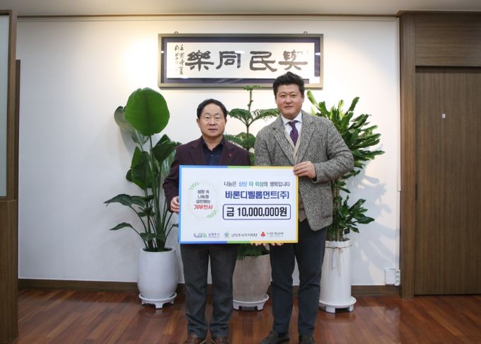 이정우 바른디벨롭먼트 대표는 “지역사회와 함께 성장해 온 기업으로서 사회적 책임을 실천하고자 이번 후원을 결정했다”며 “작은 정성이지만 도움이 필요한 분들께 희망과 위로가 되길 바란다”고 말했다.