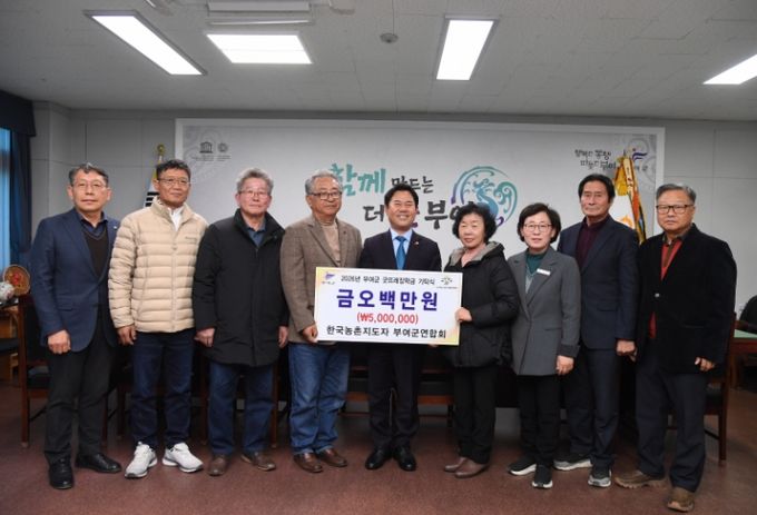 (중부시사신문) 부여군농촌지도자회(회장 임병우)는 부여군청을 방문하여 인재 육성을 위한 장학금 5백만 원을 (재)부여군굿뜨래장학회에 기탁했다고 13일 밝혔다.