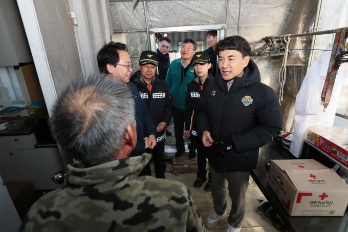 이날 김진태 지사는 겨울철 폭설로 인한 주거용 비닐하우스 붕괴 위험 여부를 점검하고, 거주지 내 난방기기와 소화기 작동상태 등 화재 예방을 위한 안전 점검을 실시했다.