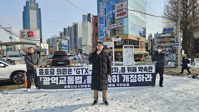 갈매신도시연합회는 ▲GTX-B 갈매역 정차에 대한 윤호중 의원의 명확한 입장과 3월 안에 광역교통법 개정을 신속히 추진할 것 ▲지역구 국회의원으로서 국토교통부와의 면담을 통해 그동안 광역교통개선대책이 부재했음을 인식시키고, 역 간 거리 제한의 예외지역으로 관철시킬 것 ▲갈매동 주민 피해를 최소화하기 위한 실질적 해결 방안 마련할 것을 강력히 촉구하며, 책임 있는 답변이 있을 때까지 집회와 1인 시위를 이어갈 뜻을 밝혔다.