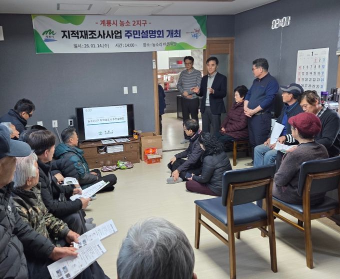 (중부시사신문) 충남 계룡시는 2026년도 지적재조사사업 실시계획에 따른 사업지구 지정을 위해 지난 14일과 16일 농소2지구와 광석2지구 토지소유자 및 이해 관계인들을 대상으로 주민설명회를 개최했다.