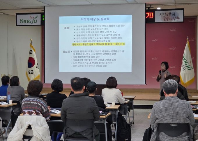 (중부시사신문) 양주시가 지난 16일 농업기술센터 내 교육장에서 도시농업 활성화와 전문 인력 양성을 위한 ‘도시텃밭전문가 교육’을 개최했다.