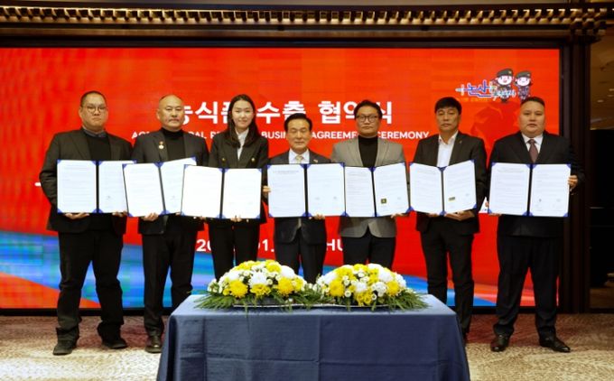 논산시는 22일 몽골 울란바토르 징기스칸 호텔에서 몽골 현지 대형 유통 전문기업 6개사와 ‘논산시 농식품 수출 활성화를 위한 수출 협약’을 체결했다.