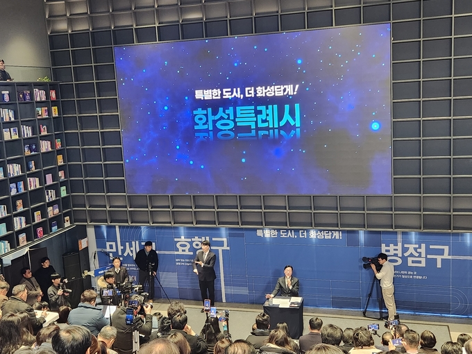 이번 기자회견은 지식과 문화, 배움이 일상에서 축적되는 공간인 화성동탄중앙도서관에서 개최함으로써, 아이부터 어르신까지 함께 배우고 화성의 미래를 함께 그려가는 도시로 나아가겠다는 시의 의지를 상징적으로 담았다.