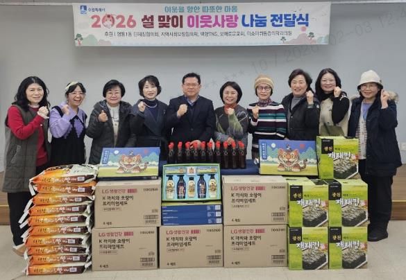(중부시사신문) 영통구 영통1동은 지난 3일 영통1동 단체장협의회가 설 명절을 앞두고 관내 저소득 이웃을 위한 ‘설 맞이 이웃사랑 나눔 전달식’을 진행했다고 밝혔다.