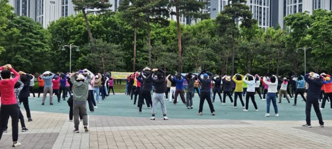 평일 아침 누구나 참여할 수 있는 건강체조교실도 진행된다. 에어로빅과 국학기공 프로그램을 부평공원·부영공원·원적산공원 등 13개소에서 3월 3일부터 10월까지 운영하며, 별도 신청 없이 현장에서 자유롭게 참여할 수 있다.