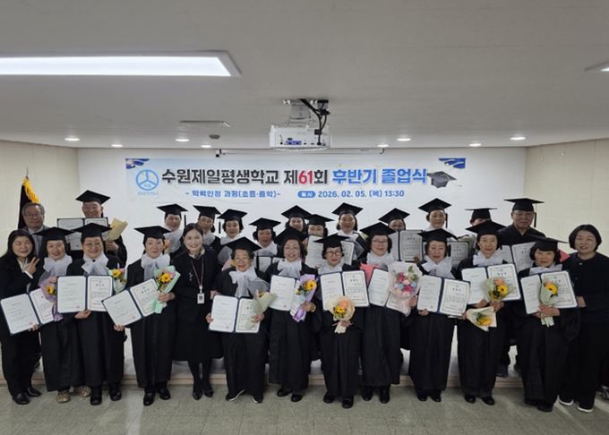 (중부시사신문) 수원제일평생학교는 2월 5일 오후 제61회 하반기 학력인정 졸업식을 진행했다. 졸업식은 교내 난타 동아리의 축하 공연으로 시작됐으며, 경기도교육청·수원교육지원청·수원시청 관계자들이 참석해 자리를 함께했다.