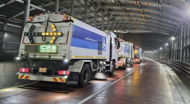(중부시사신문) 수원시 영통구는 지난 11일 설 명절을 맞아 귀성객들에게 쾌적하고 안전한 도로 환경을 제공하기 위해 주요 도로 구간에 대한 노면 청소차량 합동 작업을 실시했다.