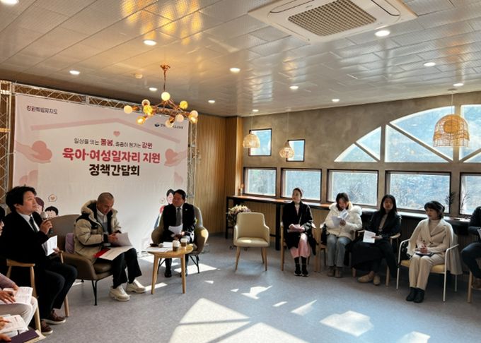 (중부시사신문) 강원특별자치도교육청은 2월 12일 강원특별자치도교육청유아교육원에서 육아 중인 부모와 경력단절여성 등 20여 명이 참석한 가운데, 강원특별자치도와 함께하는 ‘육아지원·여성일자리 정책간담회’를 개최했다.
