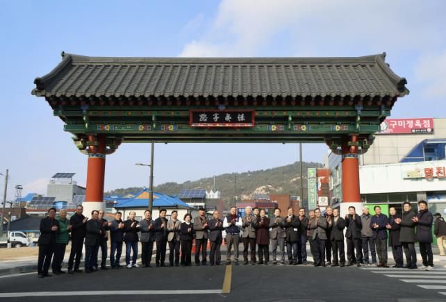 군은 지난 12일 동문리 일원에서 가세로 군수를 비롯한 군의원, 지역주민 등 200여 명과 함께 경이정로 도로 개설과 일주문의 준공을 기념하며 현판식을 개최했다.