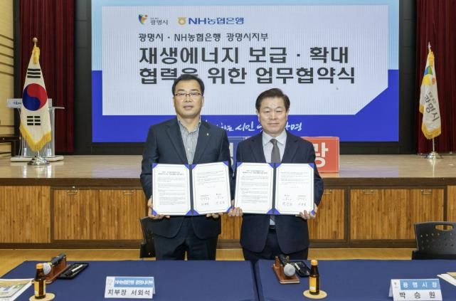 시는 13일 시청 대회의실에서 NH농협은행 광명시지부와 ‘재생에너지 보급·확대 및 사회공헌 연계 업무협약’을 체결했다.