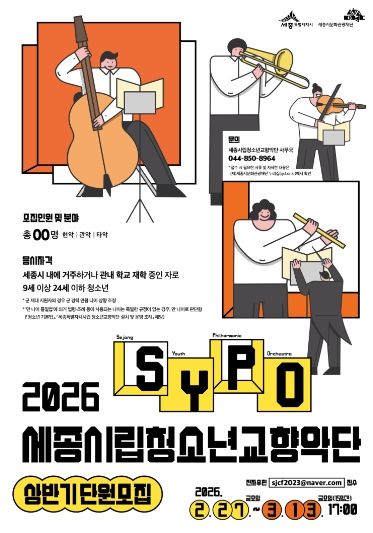 (중부시사신문) 세종시립청소년교향악단이 27일부터 내달 13일까지 지역예술을 선도하는 예술단으로 함께 성장할 참신하고 실력 있는 2026년 신규단원을 모집한다.