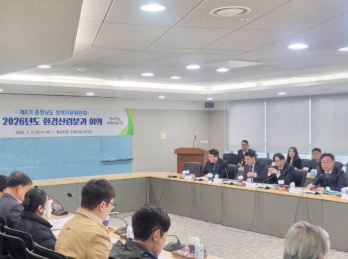 (중부시사신문) 충남도는 6일 도청 소회의실에서 환경‧산림 분야 정책의 실효성을 높이기 위한 ‘2026년 정책자문위원회 환경산림분과 회의’를 개최했다.