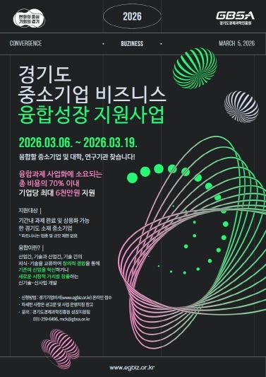 (중부시사신문) 경기도와 (재)경기도경제과학진흥원이 도내 중소기업의 혁신 성장과 새로운 비즈니스 모델 발굴을 돕는 ‘2026년 중소기업 비즈니스 융합성장 지원사업’의 참여기업을 모집한다.