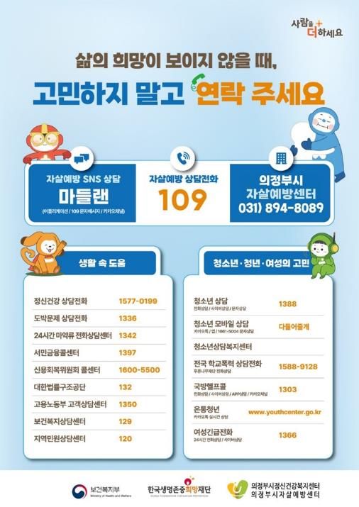 (중부시사신문) 의정부시 보건소는 봄철 자살률이 증가하는 자살 고위험 시기(3~5월)를 맞아 시민의 생명을 보호하고 정신 건강 인식을 높이기 위한 자살 예방 집중 홍보 활동을 실시한다.
