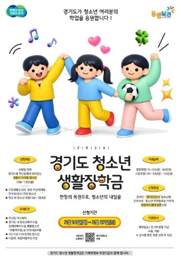 ‘경기도 청소년 생활장학금’은 기획재정부 복권 기금을 재원으로 운영하는 장학 지원 사업이다. 경제적으로 어려운 가정의 청소년이 안정적으로 학업을 유지할 수 있도록 장학금을 지원해 교육 기회를 보장하는 데 목적을 둔다.