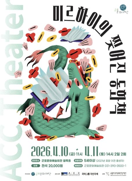 (중부시사신문) 군포문화재단은 어린이와 가족이 함께 관람할 수 있는 공연 '미르하이의 찢어진 동화책'을 4월 10일~11일 군포문화예술회관 철쭉홀에서 개최한다고 밝혔다. 이번 공연은 2026 국립아시아문화전당재단 어린이 공연 유통 공모사업의 일환으로, 국립아시아문화전당(ACC) 창·제작 어린이 공연을 지역에 소개하기 위해 마련됐다.
