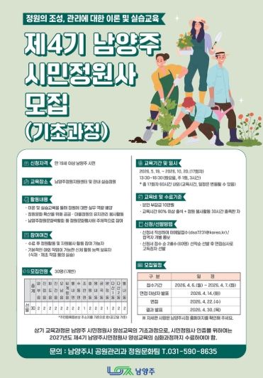 (중부시사신문) 남양주시는 ‘제4기 남양주시민정원사 양성교육(기초과정)’ 참여자를 모집한다고 24일 밝혔다.