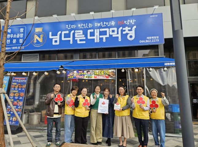 이날 ‘제이잉글리쉬어학원’, ‘남다른대구막창 세종해밀점’, ‘옥된장 세종해밀점’은 해밀동 착한가게 13호, 14호, 15호점으로 가입하고, 매월 일정금액을 기부해 어려운 이웃을 위한 나눔에 동참하기로 했다.