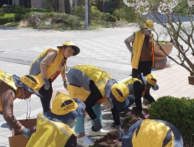 아름동 범지기마을 입주자대표회와 경로당은 지난해에 이어 2년째 협업을 통해 꽃밭·텃밭을 가꾸고 있다.