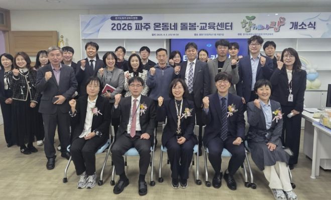 (중부시사신문) 경기도파주교육지원청은 4월 8일, 물향기초등학교 내 파주 온동네 돌봄·교육센터 ‘함께자람’ 개소식을 개최했다. ‘함께자람’은 학교 안팎의 다양한 지역자원을 연계해 초등학생에게 정규수업 이후 돌봄·교육 통합 서비스를 제공하여 학생들이 함께 성장할 수 있도록 지원하는 지역 거점형 센터이다.