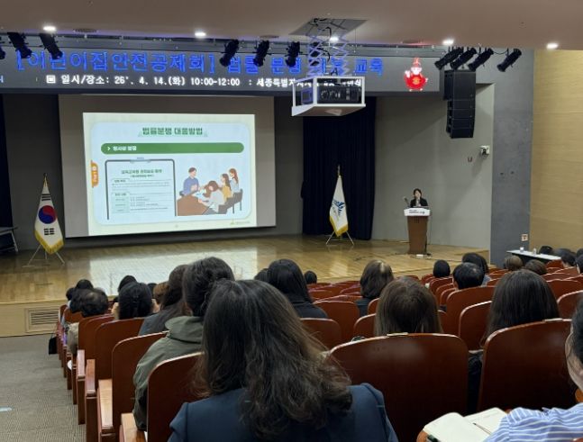 (중부시사신문) 세종특별자치시육아종합지원센터는 4월 14일 세종특별자치시청 4층 여민실에서 관내 어린이집 보육교직원을 대상으로 200여명을 대상으로‘2026년 법률 분쟁 대응 교육’을 실시했다고 밝혔다.