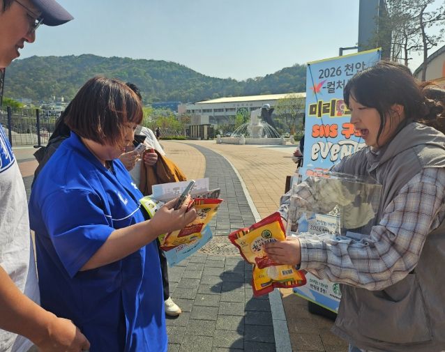 시는 야구장을 찾은 1만 7,000여 명의 관람객을 대상으로 ‘2026 천안 K-컬처 박람회’와 ‘빵의 도시 천안’ 브랜드를 알리기 위해 독립된 홍보 부스를 마련하고 시기별 주요 축제 일정 홍보에 주력했다.