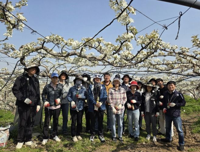이번 활동은 본격적인 배꽃 개화 시기에 맞춰 인력 수급에 어려움을 겪고 있는 농가를 지원하기 위해 마련됐으며, 참여 직원들은 바쁜 업무 속에서도 시간을 내어 농촌 현장을 찾아 의미 있는 봉사활동을 펼쳤다.