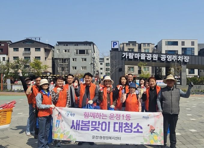 (중부시사신문) 파주시 운정1동 통장협의회는 지난 15일 봄을 맞아 쾌적한 거리 환경 조성을 위해 가람상가 일대에서 청결활동을 실시했다.