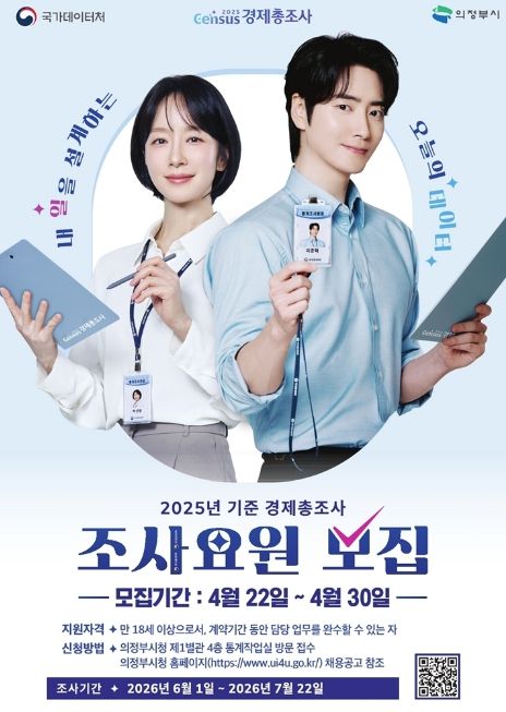 (중부시사신문) 의정부시는 6월 1일부터 실시되는 ‘2025년 기준 경제총조사’의 원활한 추진을 위해 조사요원 77명을 모집한다.