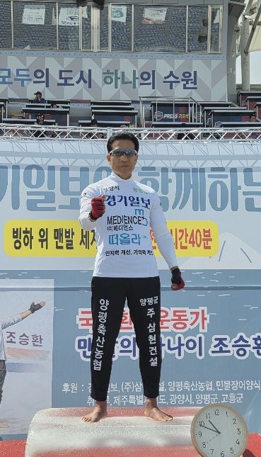 (중부시사신문) 양평군은 지난 19일 경기도 수원종합운동장에서 양평군 홍보대사이자 국제 환경운동가로 활동 중인 ‘맨발의 사나이’ 조승환 씨가 인간의 한계를 넘어서는 기록을 세웠다고 밝혔다.