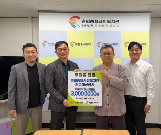 (중부시사신문) 도시환경실업(주)는 지역사회 복지환경 개선과 나눔 문화 확산을 위해 춘의종합사회복지관에 환경개선공사 후원금 300만원을 전달했다. 이번 후원은 복지관 시설 환경을 개선해 지역 주민들이 보다 안전하고 쾌적한 환경에서 복지서비스를 이용할 수 있도록 지원하기 위해 마련됐다.