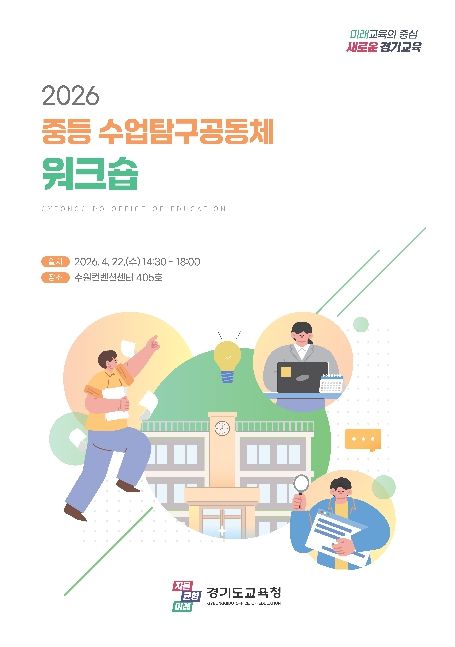 (중부시사신문) 경기도교육청이 22일 수원컨벤션센터에서 중등 수업탐구공동체 261개 팀이 참여하는 워크숍을 개최한다. 수업탐구공동체 대표교사가 참여해 연구 역량을 강화하고 올해 운영 방향을 공유하고자 마련한 자리다.