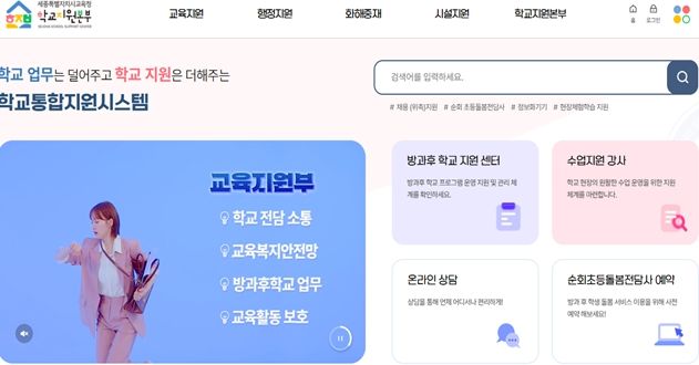 (중부시사신문) 세종특별자치시교육청학교지원본부(본부장 이미자)는 학교 현장의 행정업무를 온라인에서 한 번에 해결할 수 있는 ‘학교통합지원시스템’ 구축을 완료하고 22일부터 본격적인 운영에 들어간다.