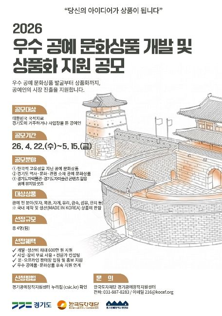 이번 사업은 4월 22일 공모를 시작으로 10월까지 상품 개발을 진행하며, 이후 경기공예페스타 등 재단 주요 행사와 연계해 성과를 공개하고 유통을 확대할 예정이다.