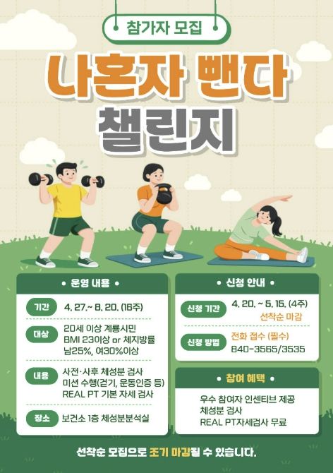 이번 챌린지는 오는 27일부터 8월 20일까지 16주간 진행되며, 단순한 걷기 위주의 활동에서 벗어나 스마트 앱을 활용한 개인별 맞춤 운동과 전문 강사의 근력 강화 지도를 병행하는 통합 건강 증진 프로그램으로 운영된다.