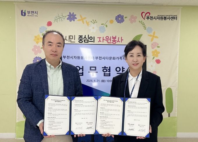 (중부시사신문) 부천시다문화가족지원센터는 4월 21일 부천시자원봉사센터와 자원봉사 활성화 및 다문화가족의 지역사회 참여 확대를 위한 업무협약(MOU)을 체결했다고 밝혔다.