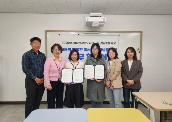 한편, 화성시립팔탄작은도서관은 그동안 지역 내 여러 학교와 협력체계를 구축해 다양한 독서 프로그램을 운영해 왔다. 이번 협약을 계기로 갈담초등학교와의 협력을 강화해 학생들의 창의력과 사고력, 인문학적 소양 함양을 위한 지원을 확대할 계획이다.
