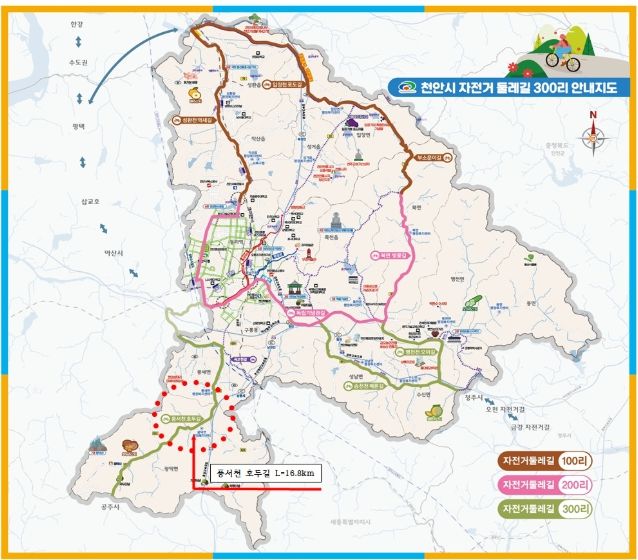 천안시는 자전거 둘레길의 마지막 핵심 구간인 ‘풍서천 호두길’ 정비공사를 이달 착공했다고 24일 밝혔다.