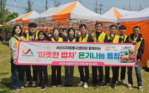 (중부시사신문) 서산시시설관리공단은 4월 23일, 서산시 석림근린공원에서 진행된‘따뜻한 밥차 봉사활동’에 참여해 봉사활동을 펼쳤다.