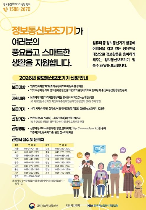 (중부시사신문) 강원특별자치도는 장애인 등 디지털 취약계층의 정보 접근성을 높이고 디지털 이용 격차를 해소하기 위해 ‘2026년 정보통신보조기기 보급 지원사업’ 신청을 받는다.