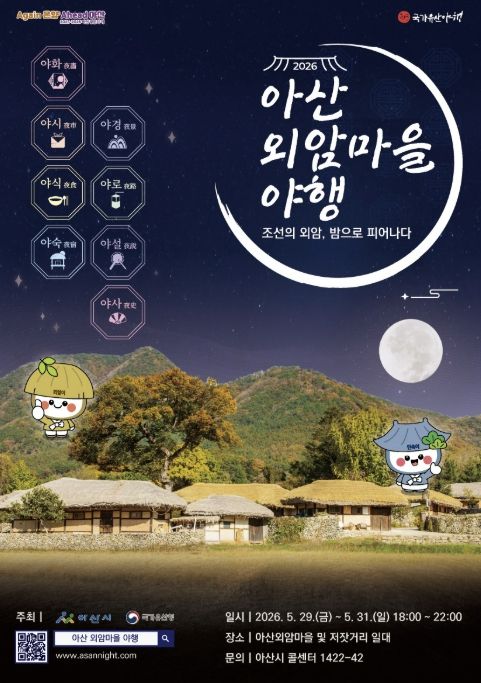 (중부시사신문) 아산시의 대표적인 야간 문화유산 축제인 ‘2026년 아산 외암마을 야행’이 오는 5월 29일부터 31일까지 3일간 송악면 외암민속마을과 저잣거리 일원에서 펼쳐진다.