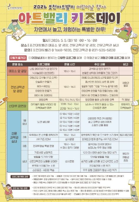 이번 행사는 자연과 예술이 어우러진 포천아트밸리의 공간적 특성을 살려 어린이들에게 다양한 체험 기회를 제공하고, 가족 단위 방문객에게 즐거운 추억을 선사하기 위해 마련됐다.