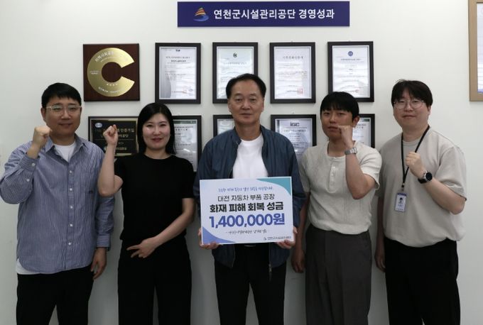 (중부시사신문) 연천군시설관리공단은 지난 23일 대전 자동차 부품 공장 화재로 피해를 입은 근로자 및 이재민 지원을 위한 성금 1,400,000원을 대한적십자사에 전달했다고 밝혔다.