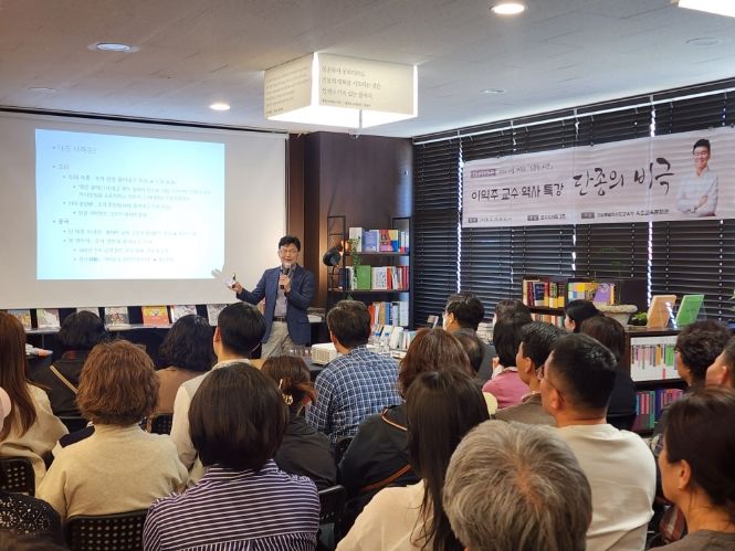 (중부시사신문) 속초교육문화관(관장 이윤전)은 4월 25일 14시 문우당서림에서 2026년 첫 번째 ‘나를 깨우는 인문학 시간’ 강연을 성황리에 개최했다.