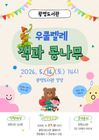 (중부시사신문) 광명시 광명도서관이 오는 5월 16일 오후 2시 온 가족이 함께 즐길 수 있는 창작뮤지컬 '우쿨렐레, 잭과 콩나무'를 연다.