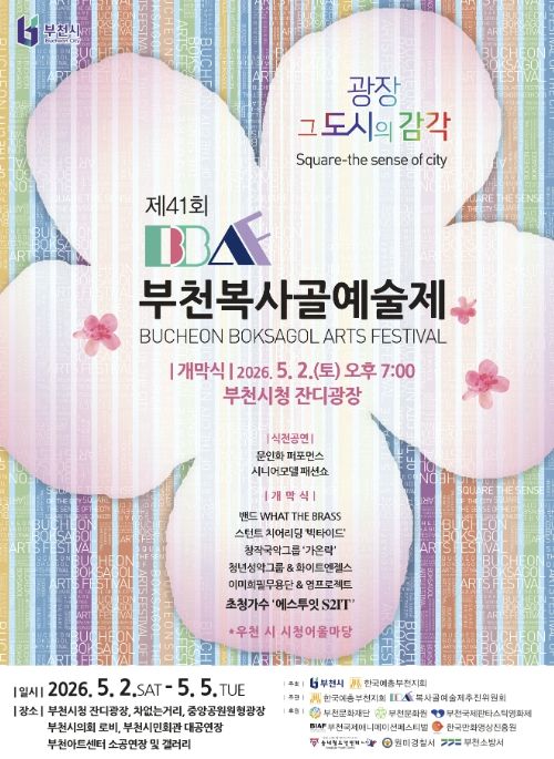 (중부시사신문) 부천시는 ‘제41회 부천복사골예술제’를 5월 2일부터 5일까지 4일간 부천시청 잔디광장과 중앙공원, 부천아트센터 일원에서 연다.
