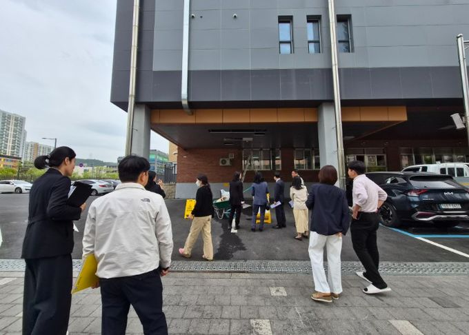 이날 심상웅 교육장을 비롯한 교육지원청 행정국 관계자들은 급식실 증축 공사 현장을 점검하며 공정 진행 상황과 안전 관리 실태를 확인했다. 이어 교사동 전반을 둘러보며 누수와 보도블록 침하 등 시설 취약 요소를 집중 점검하고, 학교 측과 함께 보완 및 개선 방안을 구체적으로 논의했다.