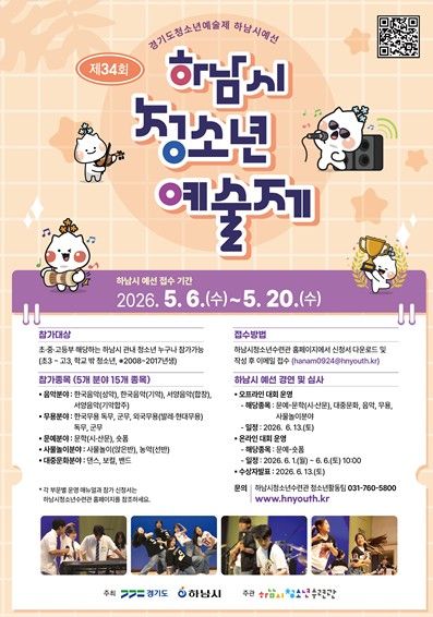 (중부시사신문) 하남시가 주최하고 하남시청소년수련관이 주관하는 ‘2026 제34회 하남시청소년예술제’가 오는 6월 13일 하남시청소년수련관에서 개최된다.