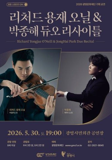 광명문화재단은 오는 5월 30일 오후 7시 광명시민회관에서 ‘리처드 용재 오닐&박종해 듀오 리사이틀’을 개최한다.
